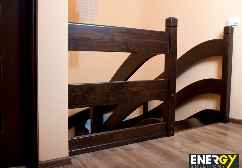 Stringer stairs, railing: bands.